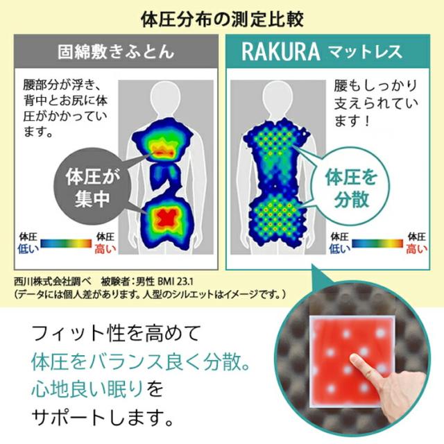 新生活 西川 RAKURA ラクラ 旧 suyara すやら セミダブル ベッド マットレスパッド トッパー 体圧分散 腰ラク 体圧分散