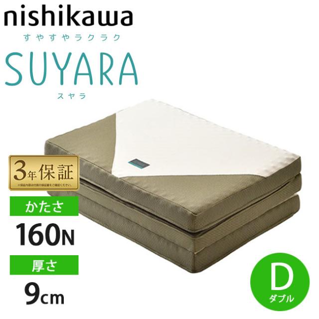 西川 スヤラ ダブル 三つ折り 140×200×9cm 2460-10524 点で支える 高反発マットレス 健康敷布団 体圧分散 寝姿勢安定 高弾性 旧(ラクラ rakura)