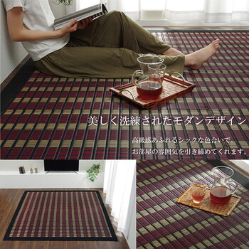 また、厳選された良質の太く長いイ草を高密度に織り込んでいますので丈夫で耐久性があり、しかも素足に心地よいクッション性とボリューム感があります。