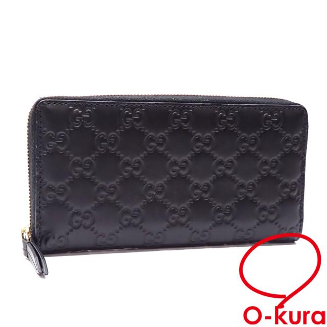 中古 グッチ ラウンドファスナー 長財布 グッチシマ レディース ブラック レザー