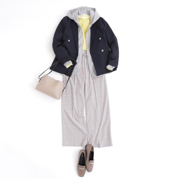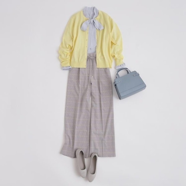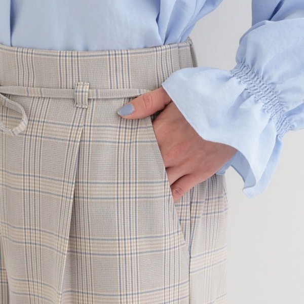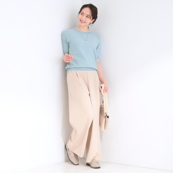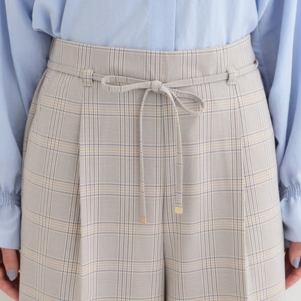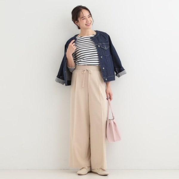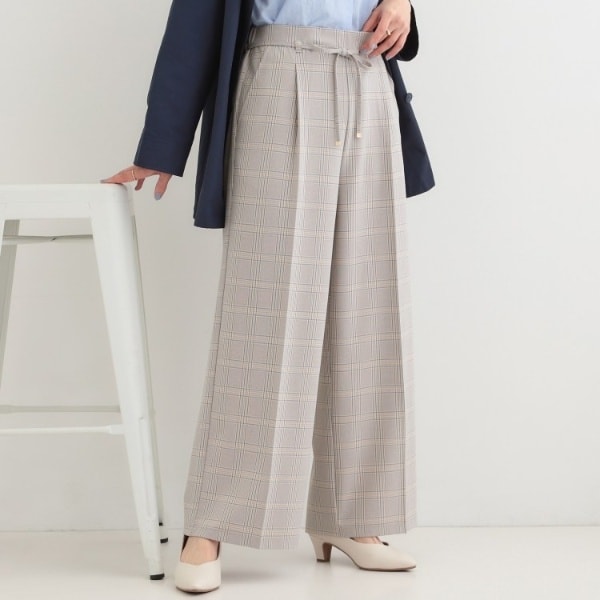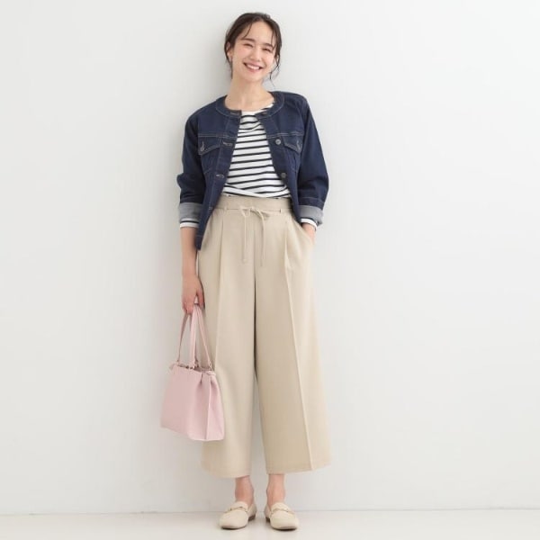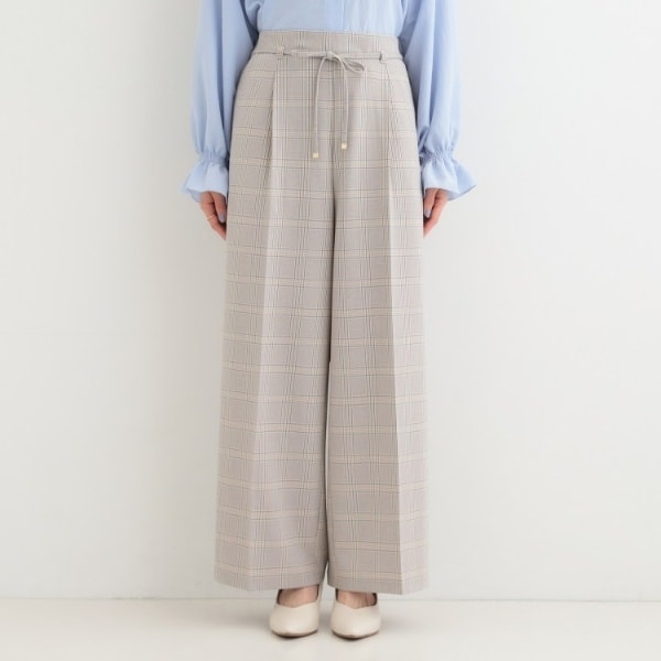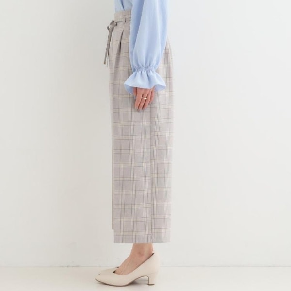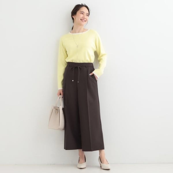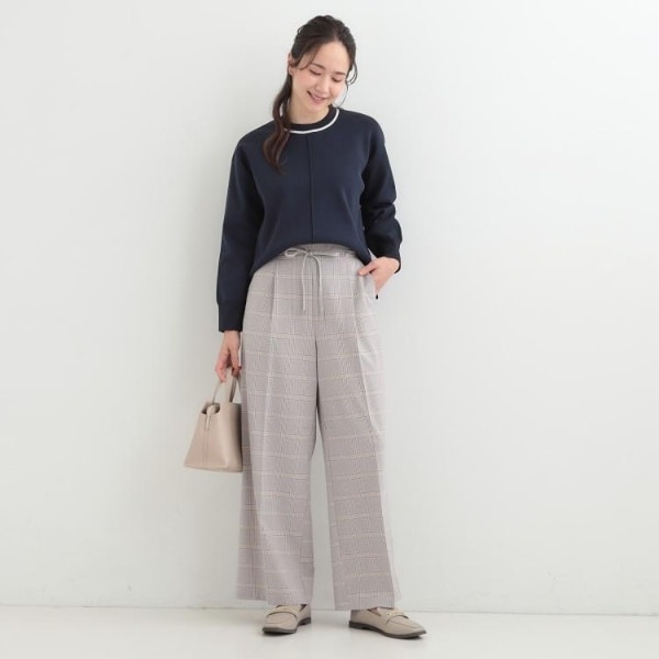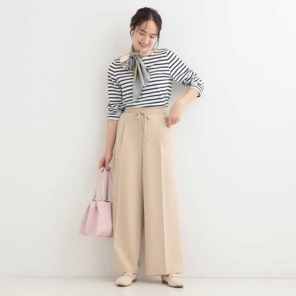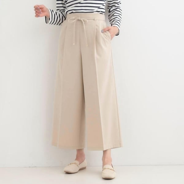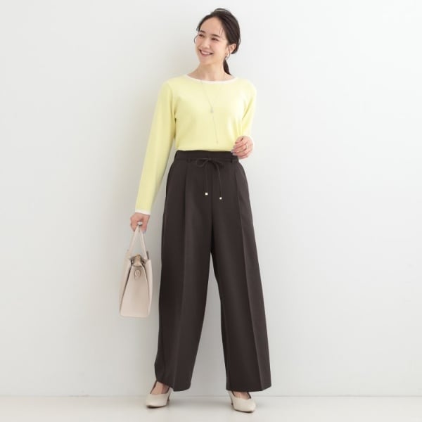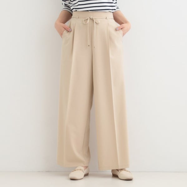 イージーパンツながら、ウエストのリボンディティールとセンタープレスがきちんと見えするデザイン。