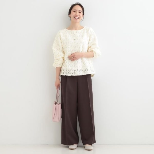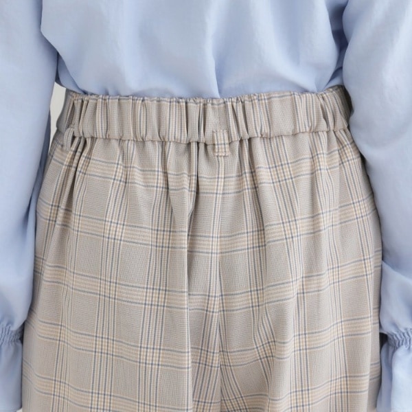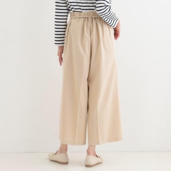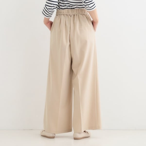 ウエスト後ろゴム仕様で、楽にキレイに穿いていただける幅の広すぎないワイドシルエットです。