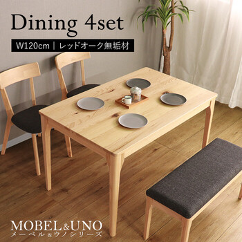 MOBEL&UNO 世界に一つだけのダイニング4点セット120 ナチュラル 送料無料