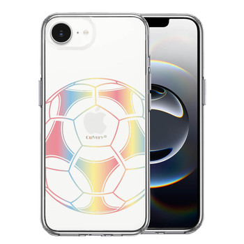 iPhone16e ケース クリア サッカーボール カラー スマホケース 側面ソフト 背面ハード ハイブリッド 送料無料