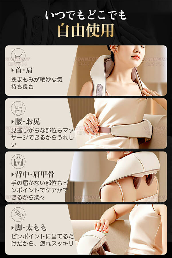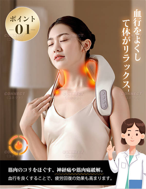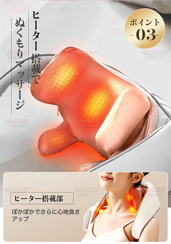 ネックマッサージャー ヒーター付 3D 首マッサージ コードレス usb充電式 軽量 強度調節 低騒音 肩こりマッサージ 肩こり 首こり ネックマッサージ マッサージャー 振動 肩もみ