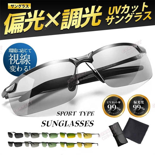 サングラス メンズ 偏光サングラス 調光サングラス 偏光 調光 UVカット カラーレンズ 釣り スポーツ 薄い 色 スポーツサングラス 変色 アウトドア 野球 スポーツサングラス レディース 運転 紫外線カット おしゃれ