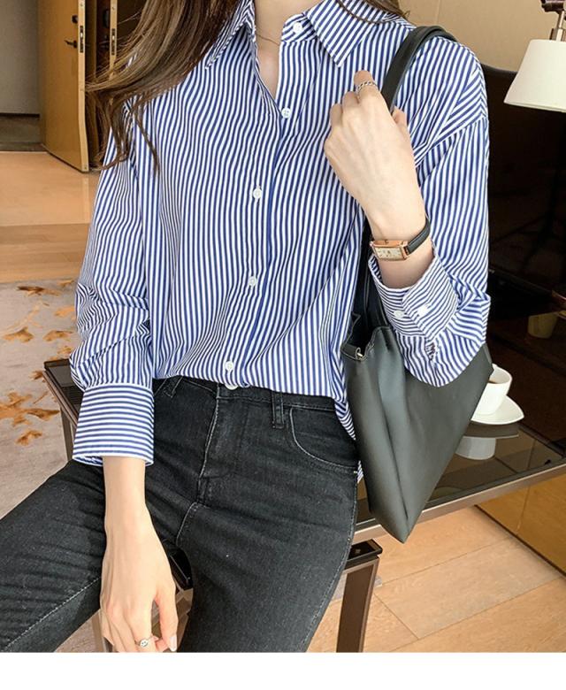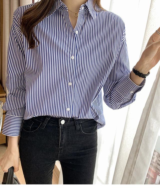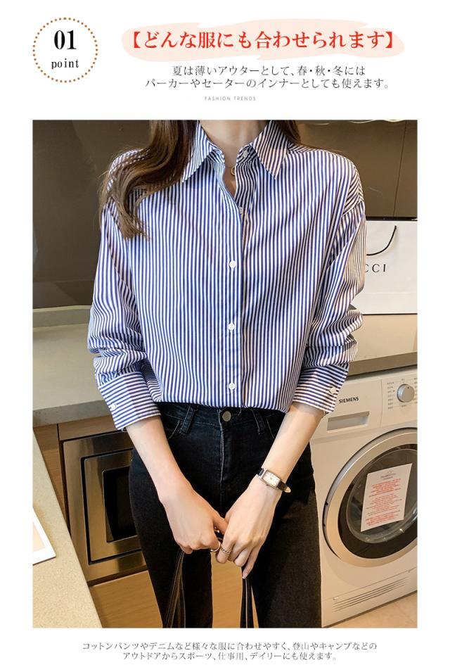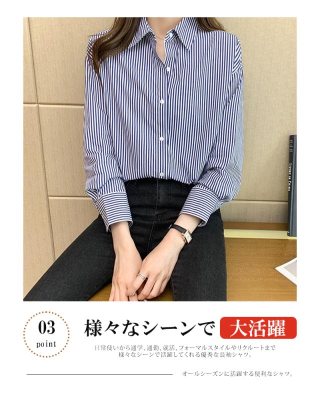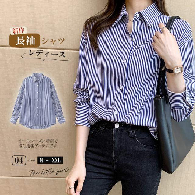 長袖シャツ レディース ストライプ柄 長袖シャツ ビジネス カジュアル オフィス 事務服 女性 おしゃれ カジュアル フォマール 通勤 トップス 秋 春 冬