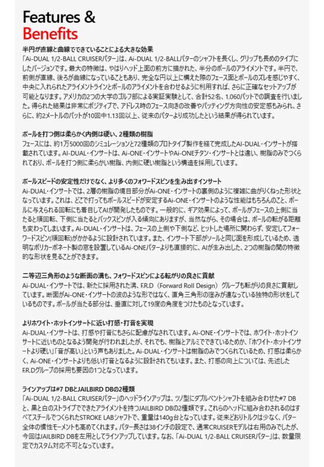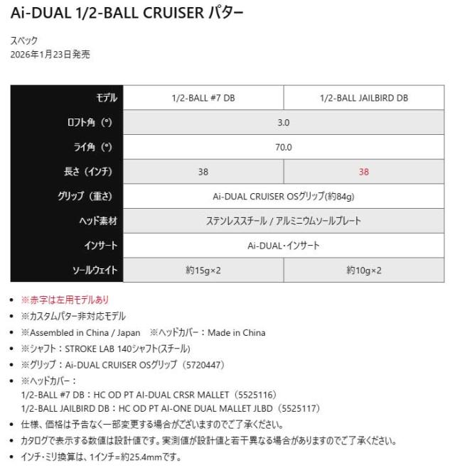 オデッセイ Ai-DUAL 1/2-BALL CRUISER JAILBIRD DB パター STROKE LAB 140シャフト 2026年モデル ODYSSEY GOLF[日本仕様][ODYSSEY][エーアイデュアル]