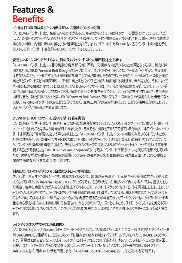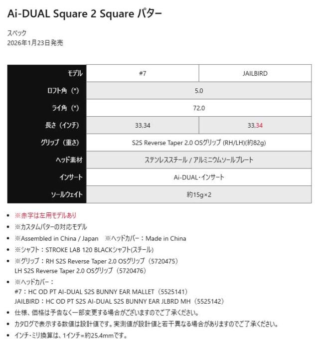 オデッセイ Ai-DUAL Square 2 Square #7 パター STROKE LAB 120 BLACK シャフト 2026年モデル ODYSSEY GOLF[日本仕様][ODYSSEY][エーアイデュアル]