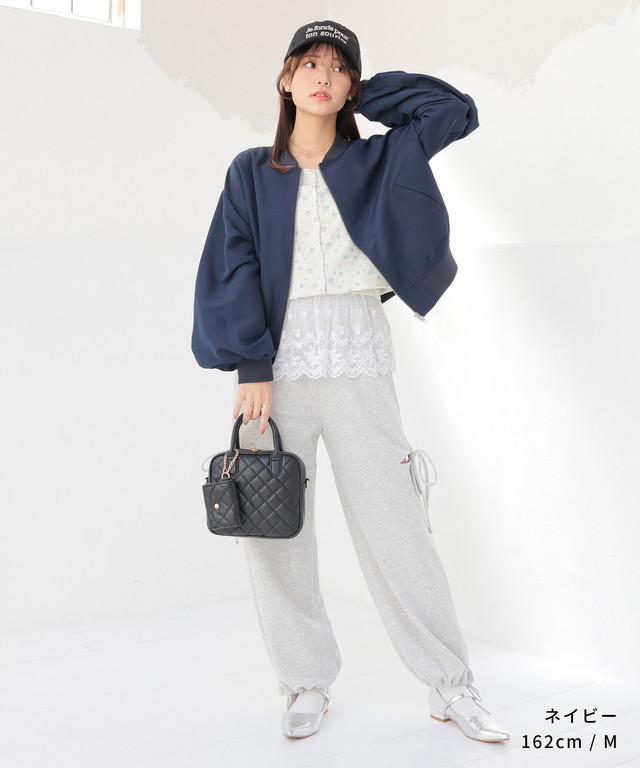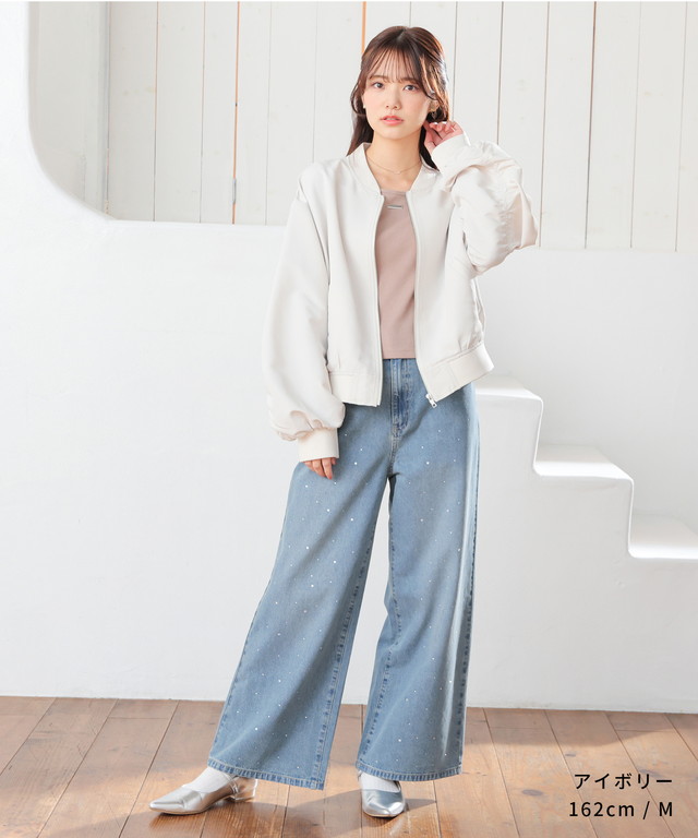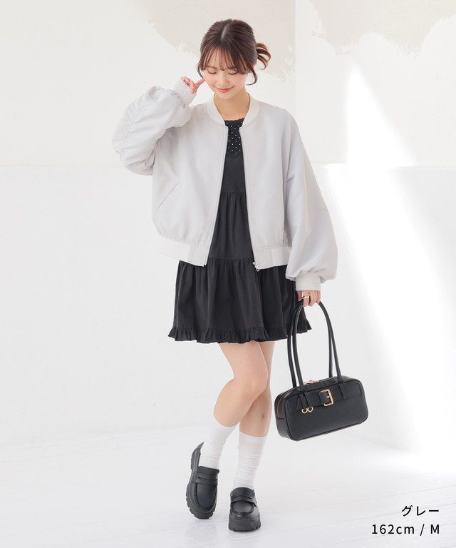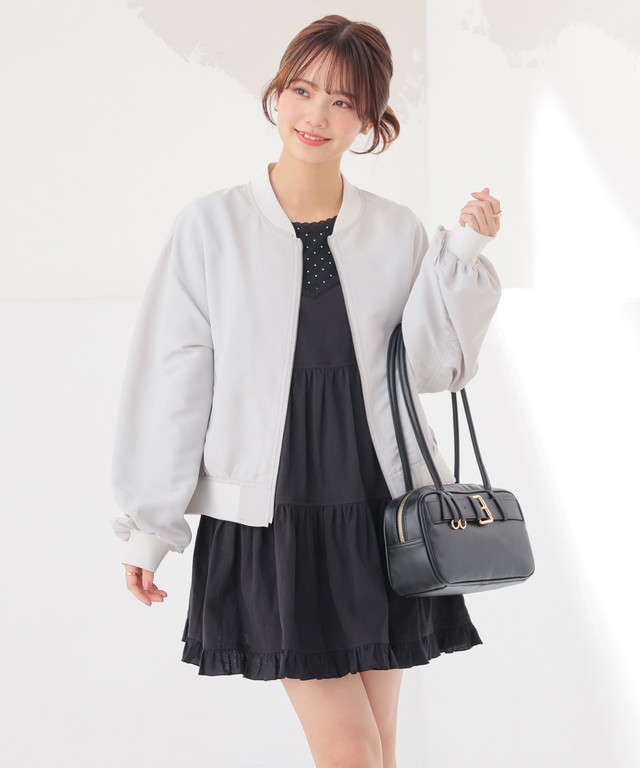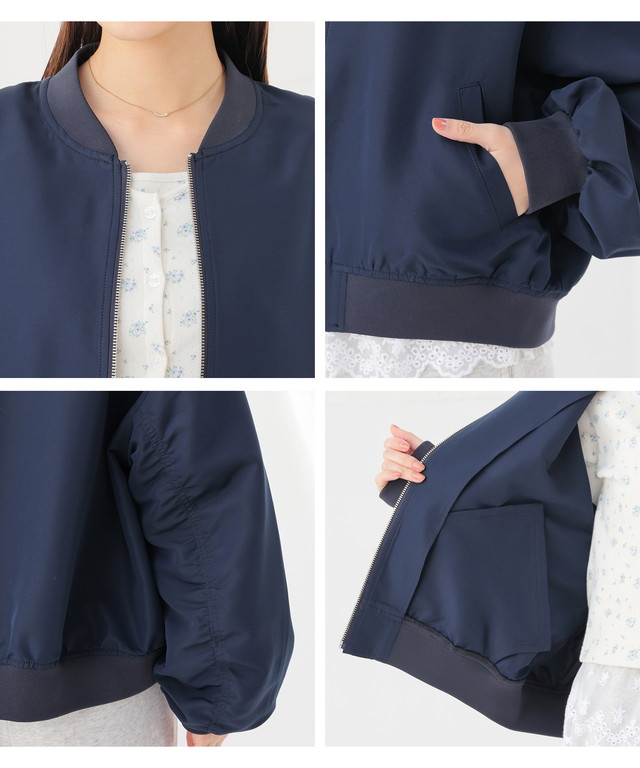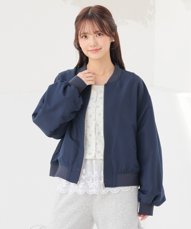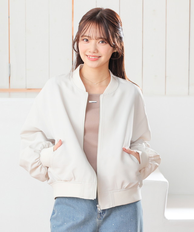 アウター ジャンパー ブルゾン ジャケット はっ水 撥水加工 短め丈 ボリューム袖 無地 ポケット ガーリー レディース Honeys ハニーズ 撥水加工リブブルゾン