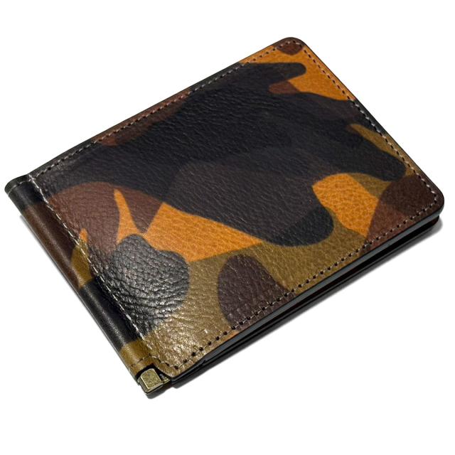 札ばさみ 財布 マネークリップ / メンズ レディース / 本革 牛革 イタリアンレザー エルヴァケーロ 迷彩