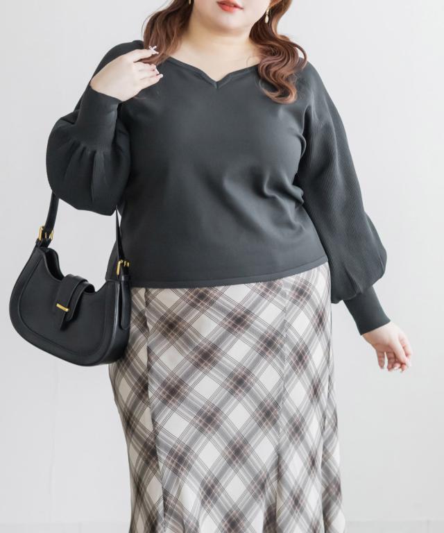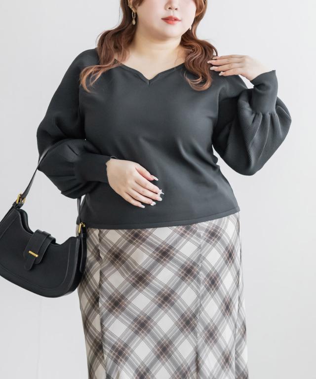 | 3Lを着て、全体的にちょうどいい着用感で、ニットなので伸びがよく窮屈さは感じませんでした。ハートネックがデコルテをきれいに見せてくれて、顔まわりに自然な抜け感が出るのがポイントです。ウエストがほんのりシェイプされているので、アウトで着てもシルエットがだらっとせず、すっきり着られました◎ バックのリボンは締め具合を調整できるので、自分好みのフィット感にできるのも嬉しいです。デニム合わせでカジュアルにも、スカート合わせで大人可愛くも着られて、コーデの幅が広がるトップスだと思いました♪ |
