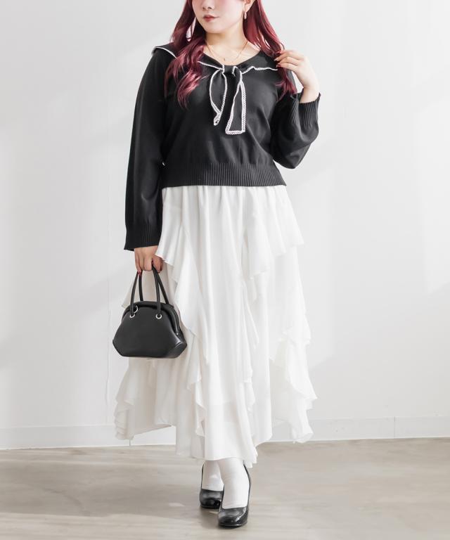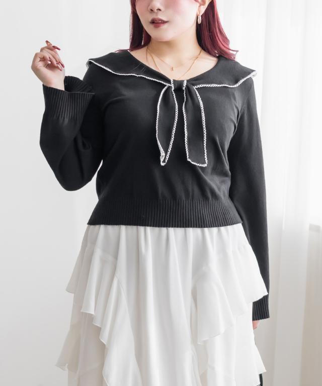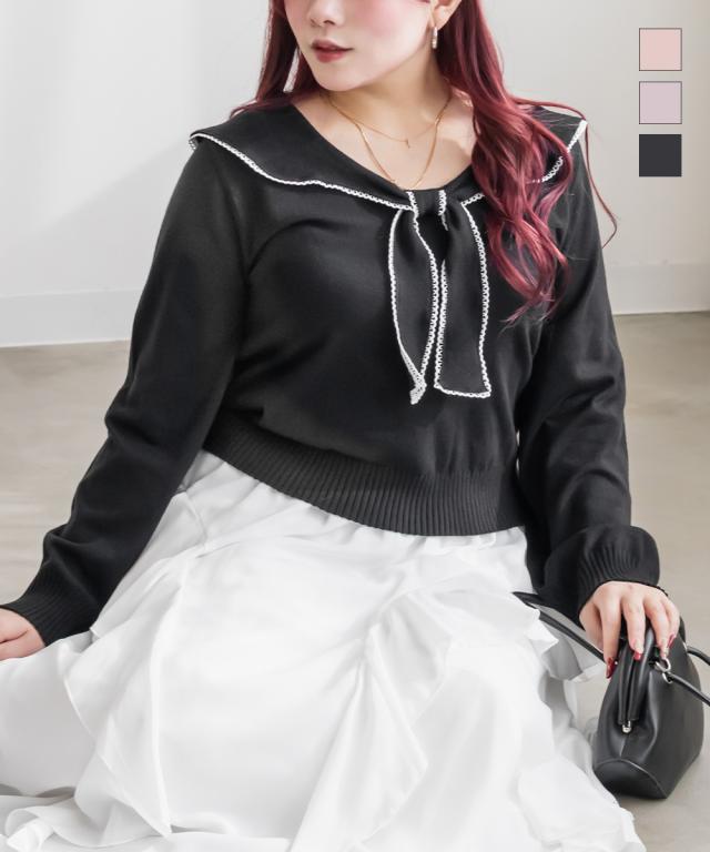 大きいサイズ/レディース/LL/3L/4L/CLETTEオリジナルセーラーカラーニット