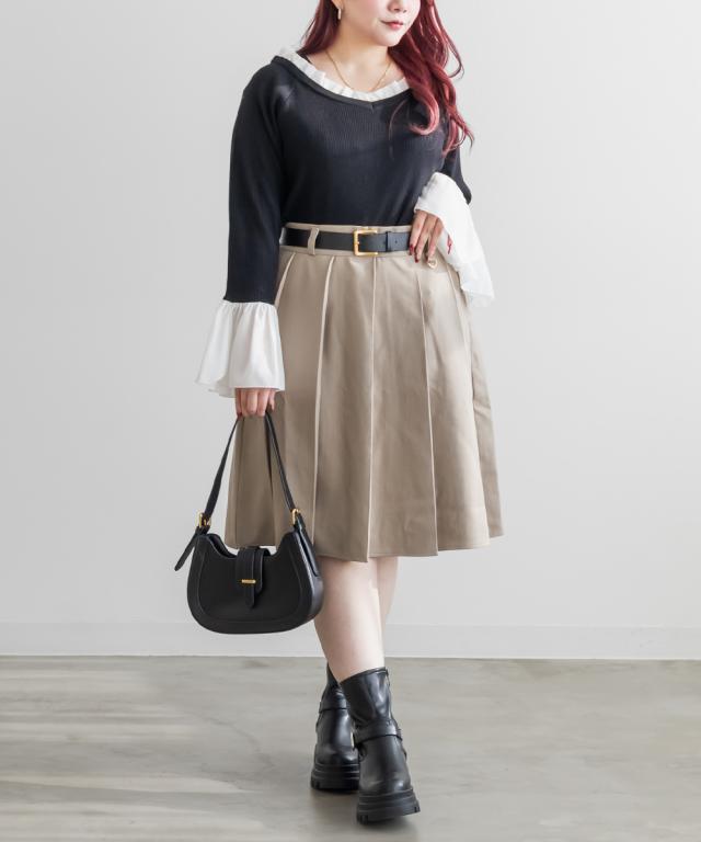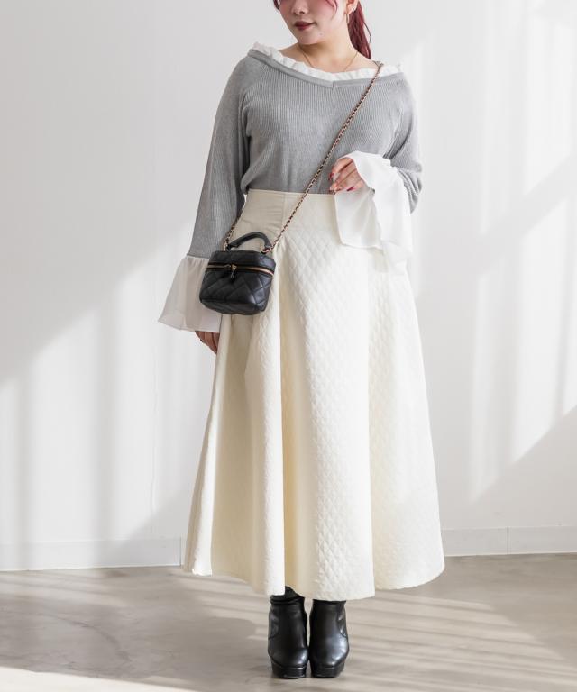 | 3Lを着て着用感はちょうどよく、ニット部分は伸びるので窮屈感なく楽に着られました。ジョーゼット生地のフリルをドッキングしたデザインが自然に視線を上に集めてくれて、顔回りを華やかに見せてくれます◎ 異素材切り替えでも甘くなりすぎず、大人っぽさが残るバランス感が◎ 1枚でスカート・パンツ合わせでも華やかに見えるのがポイントです♪ きれいめにもカジュアルにも使いやすく、オンオフどちらにも活躍してくれるニットだと思いました。 |