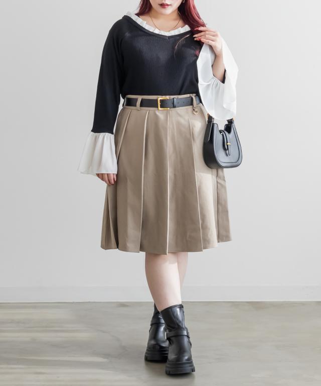 大きいサイズ/レディース/LL/3L/4L/CLETTEオリジナルジョーゼットドッキングフリルニット