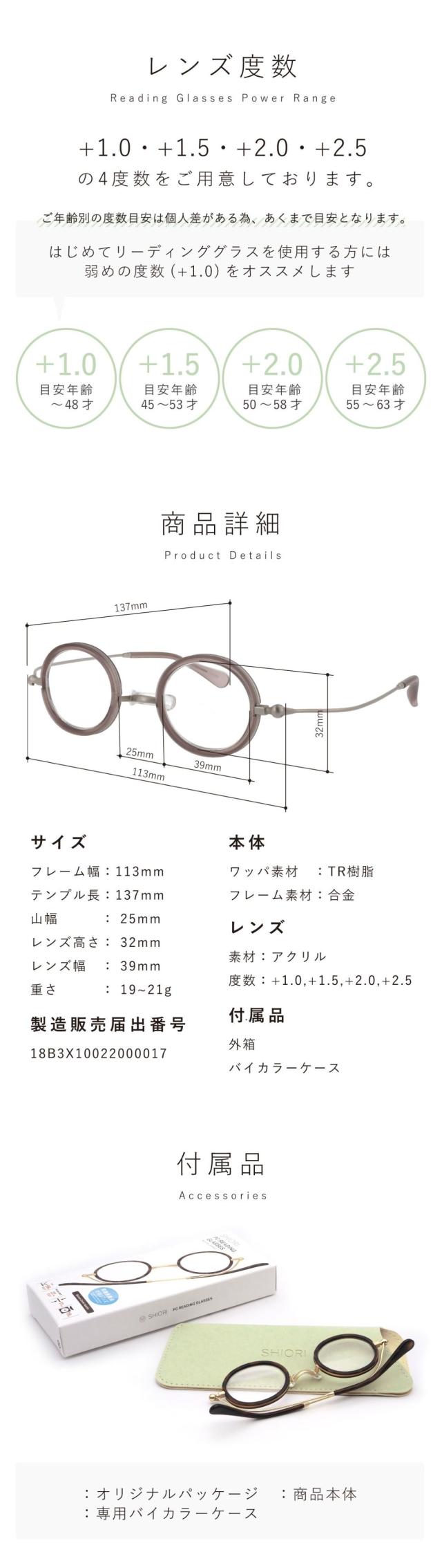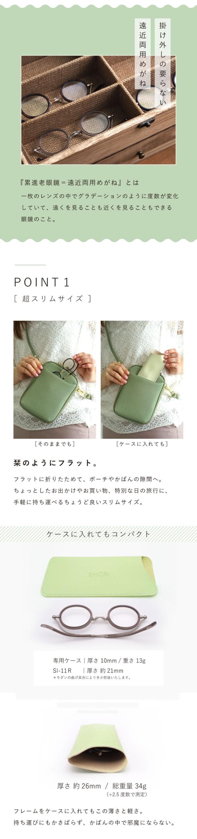 栞 SHIORI 薄型 遠近両用 老眼鏡 累進多焦点 おしゃれ レディース メンズ セルワッパ ブルーライトカット 鯖江企画 コンパクト 折りたたみ リーディンググラス 専用ケース付き SI-11R