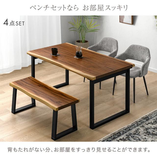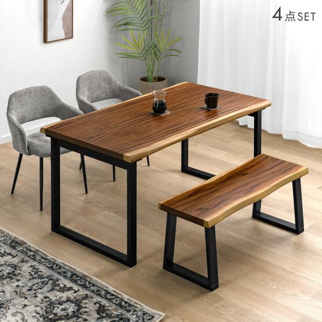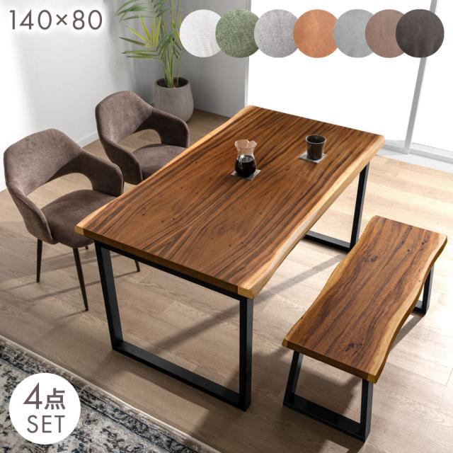 【新発売プライス!3/1迄】 天然木 ダイニングセット 4点 140 4人掛け ベンチ チェア ダイニングテーブルセット 長方形 ダイニング テーブル セット ダイニングテーブル 4人用 木製 一枚板風 耳付き天板 耳付き 【超大型】【後払/時間指定NG】
