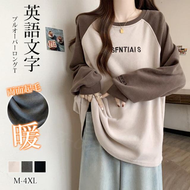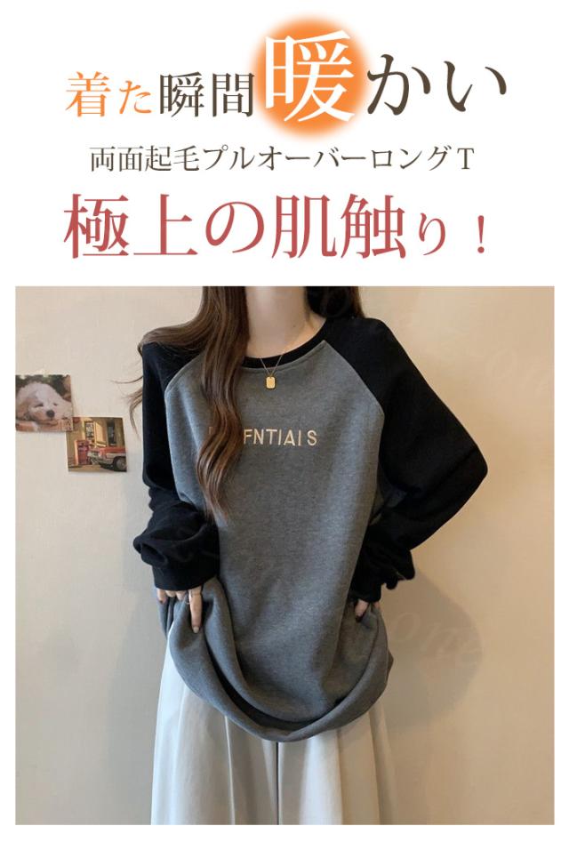72h限定!【1点1,090円!2点購入&クーポンで】両面起毛 ふわもち Tシャツ カットソー 新作 送料無料 あったか ロンT 長袖 ラウンドネック 春 秋 冬 防寒 厚手 肌着 WARM 裏起毛 レディース ゆったり カジュアル ホワイトデー 卒業式