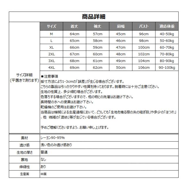 透け感:ホワイト・浅い色のみ透け感あり
