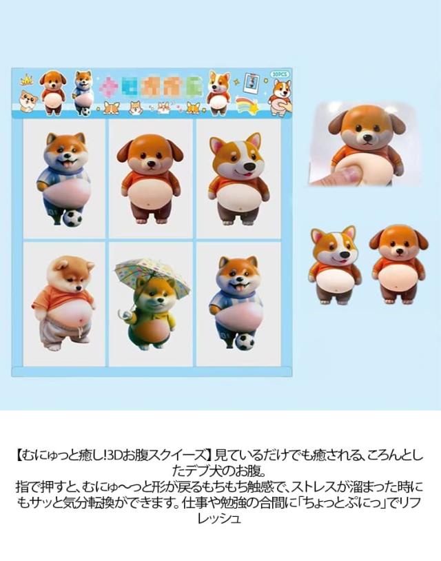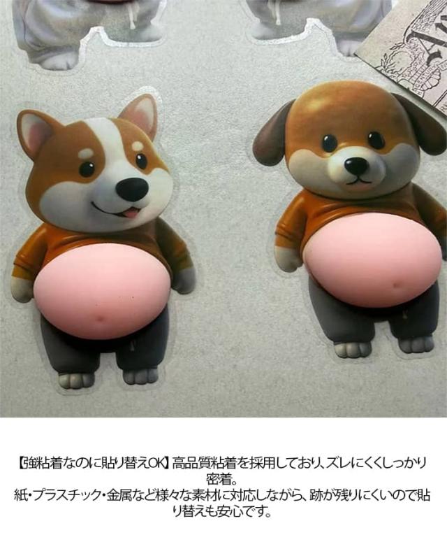 | 【むにゅっと癒し!3Dお腹スクイーズ】 見ているだけでも癒される、ころんとしたデブ犬のお腹。指で押すと、むにゅ〜っと形が戻るもちもち触感で、ストレスが溜まった時にもサッと気分転換ができます。 仕事や勉強の合間に「ちょっとぷにっ」でリフレッシュ♪ 【スマホ&手帳にピッタリ】 携帯電話の背面から手帳、日記帳、PC、冷蔵庫など どこに貼っても存在感たっぷり!大好きなグッズと一緒に、小さな癒しスペースを作れます。手帳タイムがもっと楽しくなり、毎日の予定確認もほっこり。 【強粘着なのに貼り替えOK】 高品質粘着を採用しており、ズレにくくしっかり密着。紙・プラスチック・金属など様々な素材に対応しながら、 跡が残りにくいので貼り替えも安心です。気分や季節でデコを変えて楽しめます。 【ふわふわ手触りでストレスリリーフ】スクイーズおもちゃとしても優秀で、 握る、押す、つまむなど指先で遊ぶたび心がゆるむ。 落ち込みがちな時も、そっと寄り添ってくれる癒しアイテムです。 触れば触るほど、あなたのお気に入りに。 【贈り物にも喜ばれる】 誕生日やお祝い、友達へのプチギフト、交換会にも◎ 思わず笑顔になる“癒しの小さなプレゼント”、きっと喜ばれること間違いなしです。 | |