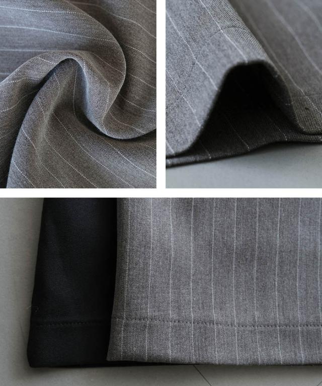 さりげなく施されたピンストライプ柄が、縦のラインを強調し、全体をすっきりとした印象に見せてくれます。