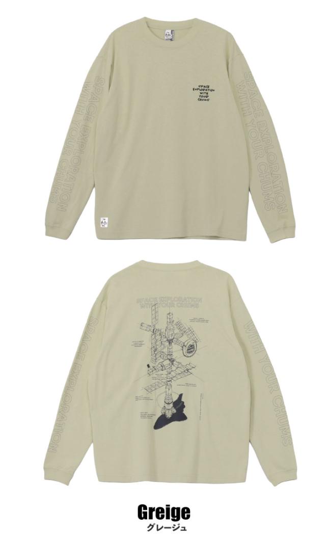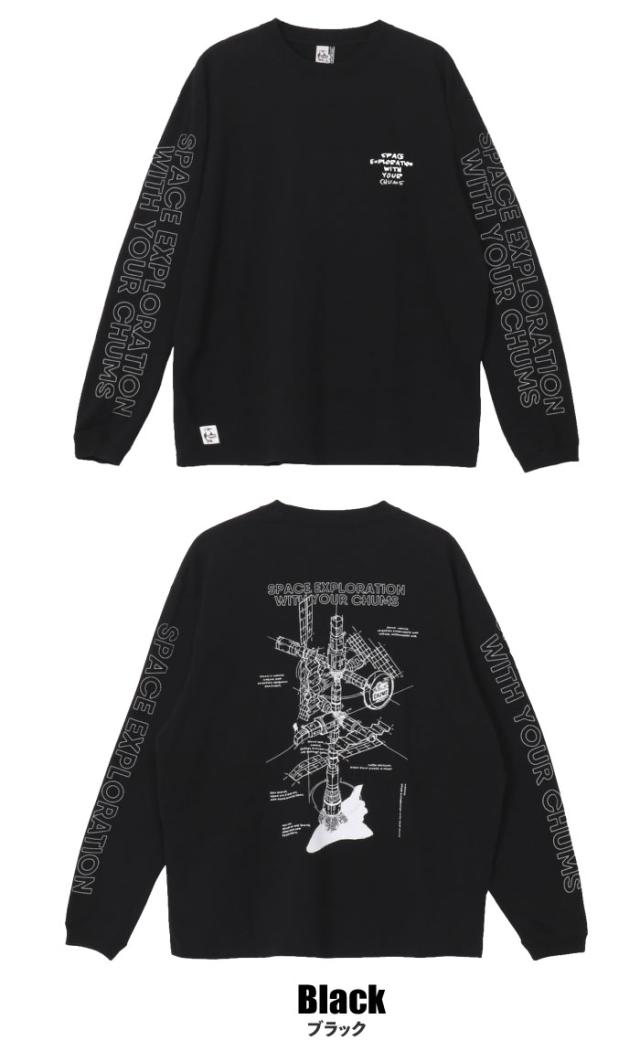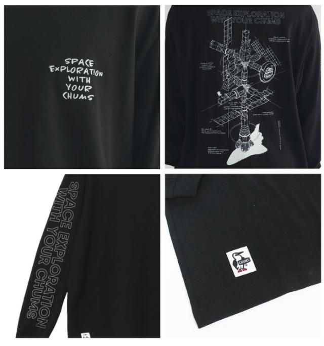 CHUMS チャムス 長袖Tシャツ ロンT スペースドック 宇宙ステーション アウトドア キャンプ 釣り トップス 刺繍ロゴ 袖プリント カジュアル おしゃれ CH01-2700 メール便対応