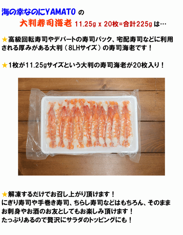 大判寿司海老 8LHサイズ 11.25g x 20枚=合計225g エビ えび