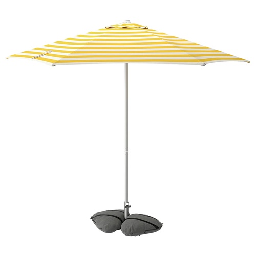 IKEA イケア パラソル 土台付 オフホワイト ブライトイエロー/ストライプ ダークグレー 270cm s19621491 HOGON ホーゴーン IGGON イッゴーン