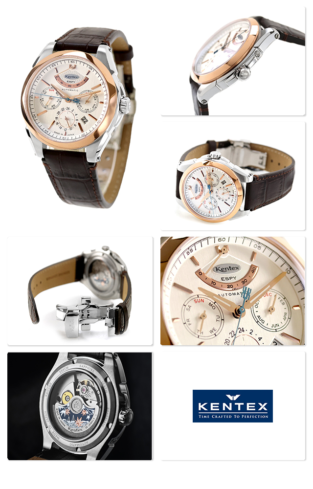 正規品 7年保証キャンペーン ケンテックス エスパイ アクティブ3 日本製 自動巻き メンズ 腕時計 E661M-03 Kentex アナログ ホワイト ブラウン 白 ◆ケンテックスのドレススポーツライン「ESPY ACTIVE」シリーズに、新作が登場。国産ハイビート(28,800振動)ムーブメントを搭載し、パワーリザーブ、日付、月、曜日表示を備えたトリプルカレンダー仕様。41mmのケースに、程よい存在感を放つベゼルと力強いラグがスポーティーな躍動感を演出しつつ、ヘアライン仕上げのダイヤルと、繊細でシャープなバーインデックスが織りなす静謐な美しさが見事に調和。力強さと気品を兼ね備えた、ケンテックスならではのドレススポーツデザインに仕上がっています。裏スケルトンから覗くローターには秋に色づく紅葉のモチーフが繊細にデザインされ、日本的エレガンスを感じさせる、優雅な仕上がりとなっています。価格は、国産ハイビート×マルチファンクションという本格機構を備えながら、10万円台前半という優れたコストパフォーマンスを実現。 機械式腕時計