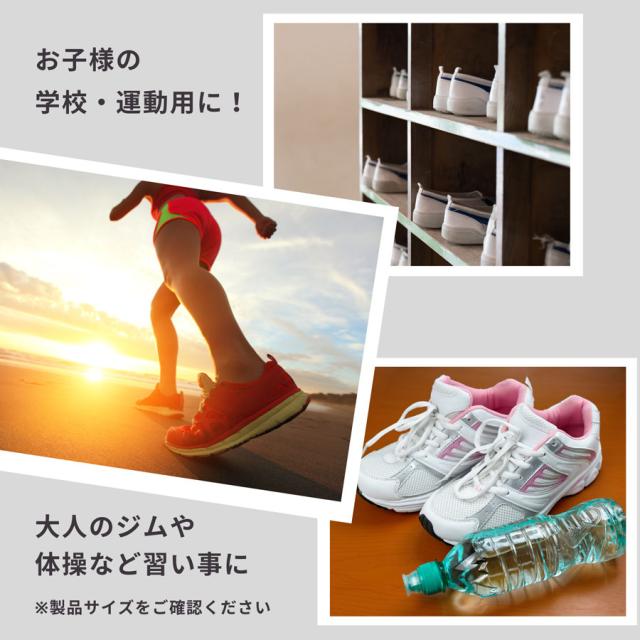上靴の持ち歩きにぴったりなシューズバッグです。ハンドルが付いた巾着スタイルです。小学校の机の横のフックに掛けられるようになっています。