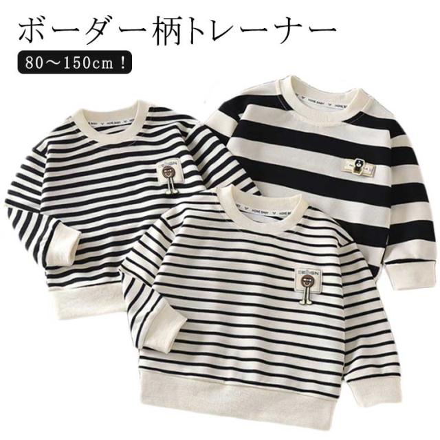 パーカー 男の子 Tシャツ スウェット トレーナー 女の子 子供服 長袖 キッズ 110 おしゃれ 春 秋 冬 トップス クルーネック ボーダー柄 通園 通学 小学生 80 90 シンプル 100 120 130 140 150