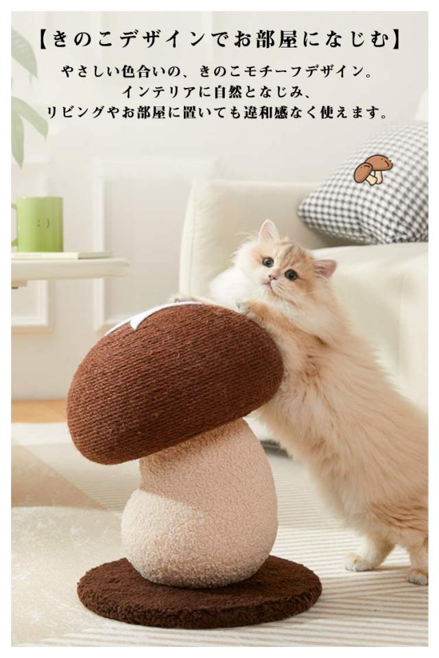 | きのこ型 猫用爪とぎ 耐久性のあるサイザル麻素材を使用。 ガリガリしても削りカスが出にくく、お掃除の手間をやさしく減らしてくれます。 やさしい色合いの、きのこモチーフデザイン。 インテリアに自然となじみ、 リビングやお部屋に置いても違和感なく使えます。 大きめのベースでしっかり支える設計。ネコちゃんが飛び乗ったり、遊んだりしても、 ぐらつきにくく、安心してお使いいただけます。 | |