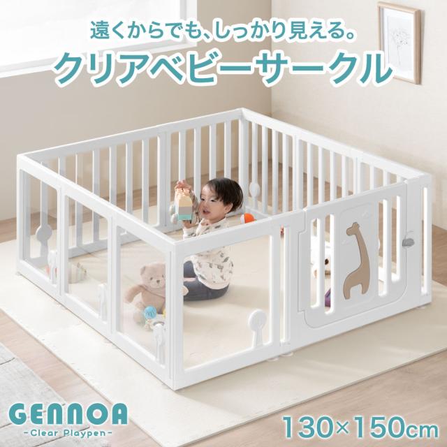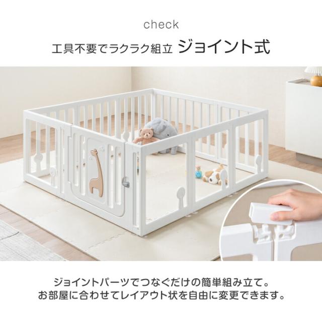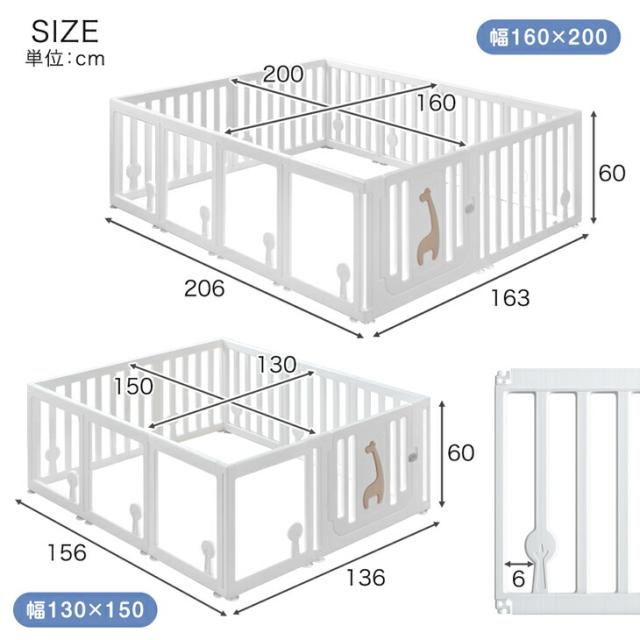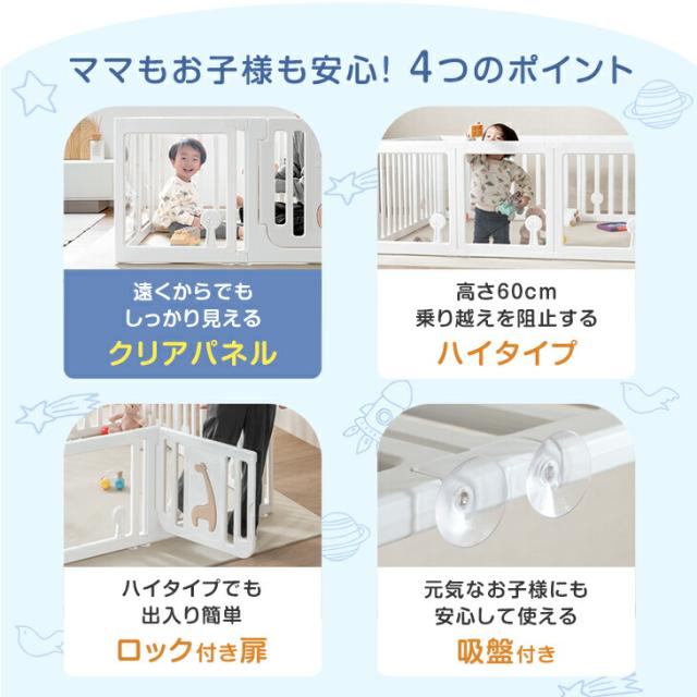 クリア ベビーサークル ハイタイプ 可愛いキリンさん扉 160×200 高さ60cm 滑り止め付 ジョイント式 ドア 扉付き サークル ベビーガード キッズサークル プレイヤード 長方形 コンパクト シンプル おしゃれ