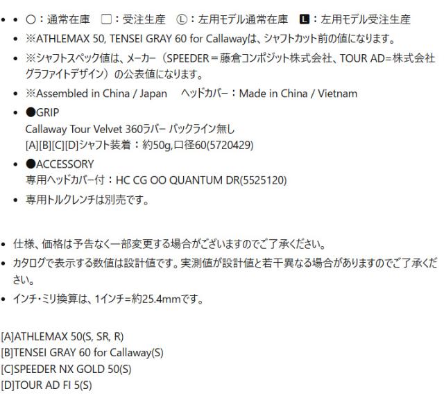 【レフティ】【特注スペック】【2026モデル】キャロウェイ QUANTUM MAX ドライバー シャフト:ATHLEMAX 50 カーボン 日本正規品 Callaway クアンタム マックス
