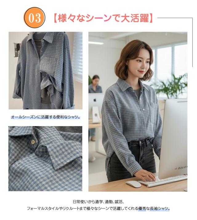 シャツ ブラウス レディース 長袖シャツ チェック柄 チェックシャツ カットソー トップス インナー シャツ オフィス カジュアル ビジネス 通勤 春 秋 日常 ゆったり 体型カバー