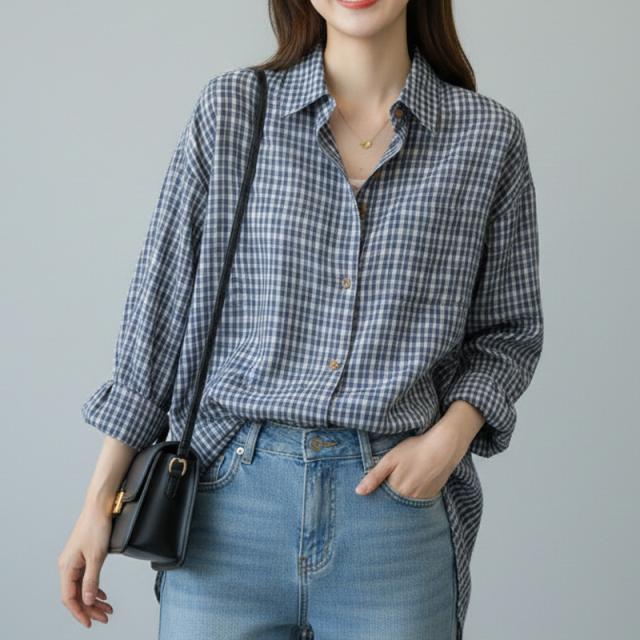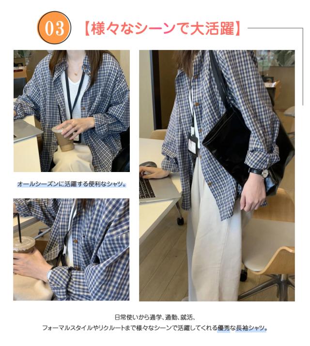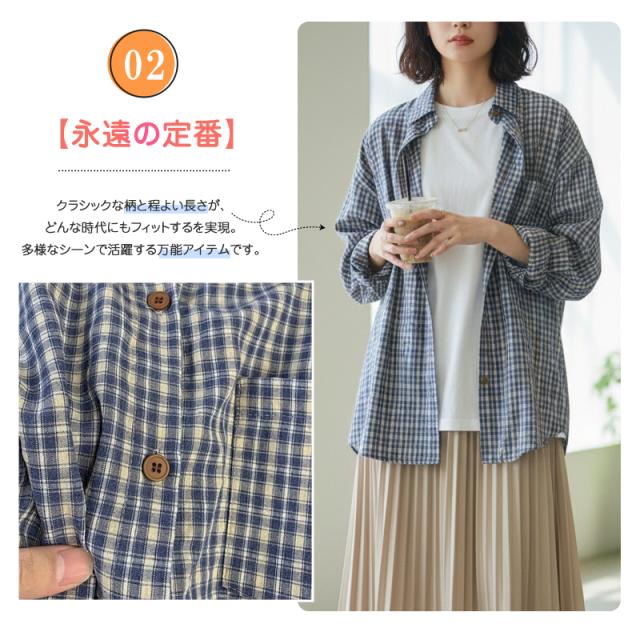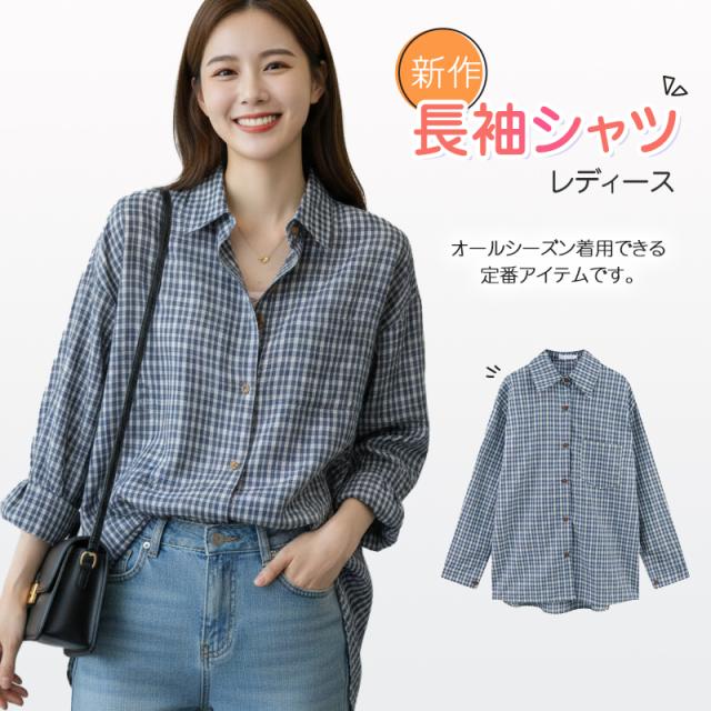 シャツ ブラウス レディース 長袖シャツ チェック柄 チェックシャツ カットソー トップス インナー シャツ オフィス カジュアル ビジネス 通勤 春 秋 日常 ゆったり 体型カバー