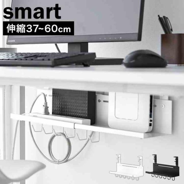 山崎実業 伸縮デスク下ケーブルトレー スマート 公式 smart 10416 10417 ホワイト ブラック ケーブルラック ケーブル 収納 トレー 配線 ネジ固定 クランプ式 穴あけ不要 スチールトレー 幅調整 37-60cm 伸縮可能 整理 配線収納 配線隠し パソコン PC 電源タップ