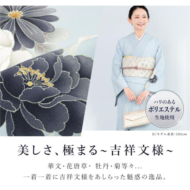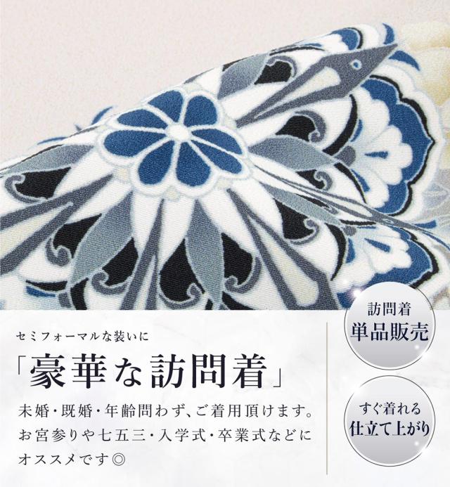 訪問着 単品 レディース 女性 和装 お宮参り 入学式 卒業式 七五三 パーティー ブルー ピンク ホワイト クリーム 青 白 花唐草 牡丹 菊 くすみカラー 販売 購入 フリーサイズ 送料無料