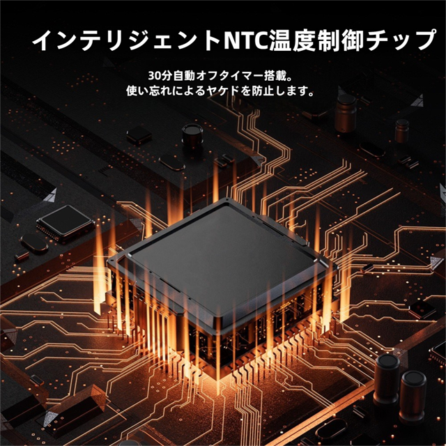 ・NTC温度制御システム採用、温度制御チップ搭載で火傷防止、安全に使用可能