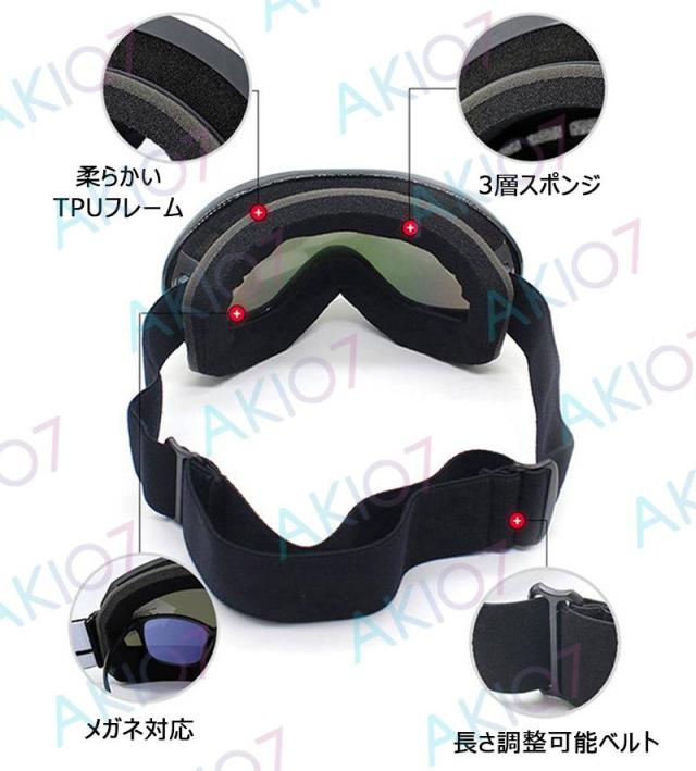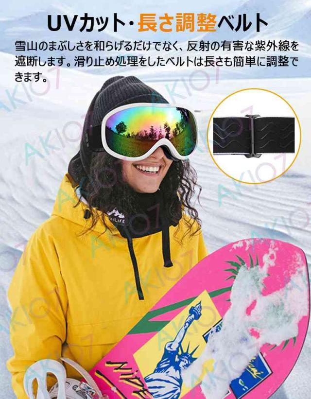 【眼鏡対応・ケース付き】スキーゴーグル スノボ ゴーグル レディース メンズ スノーボードゴーグル 曇り止め 滑り止めベルト 長さ調整ベルト 紫外線防止 通気性 軽量 耐衝撃 男女兼用 登山 防風/防雪/晴れ/曇り/全天候対応