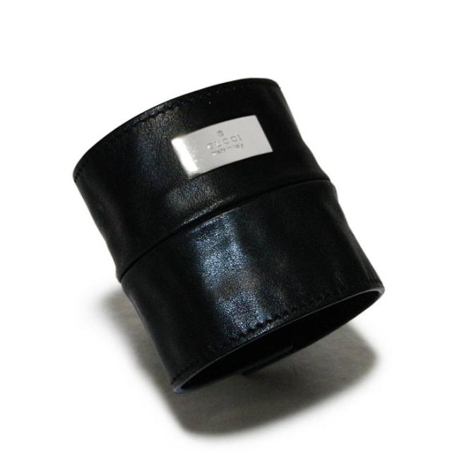 グッチ リストバンド コインケース 039・1669・0996 レザー ブレスレット バングル ブラック シルバー金具 収納スペース付 中古 GUCCI