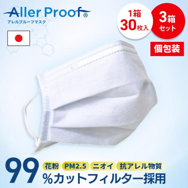 マスク 日本製 30枚入 3箱セット 90枚 サージカルマスク 4層 不織布 花粉 花粉対策 口臭ケア 最強 個包装 アレルキャッチャーマスク Lサイズ 4層構造 高い消臭力 抗ウイルス高機能フィルター 花粉 ウイルス プリーツ構造