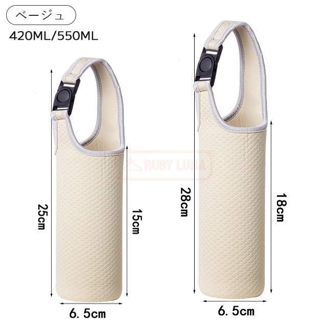 | 容量 | ◆容量420-550MLのウォーターボトルに適しています。 ※注意: ウォーターボトルの直径に合わせて適切なサイズを選択してください。 |