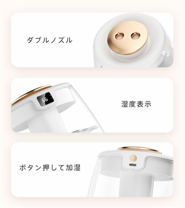 加湿器 卓上 超音波式 1L 大容量 ダブル噴霧口 USB式 空焚き防止機能 湿度表示 静音 加湿機 おしゃれ 省エネ 節電 LEDライト 長時間加湿 乾燥対策 室内 保湿 乾燥 花粉