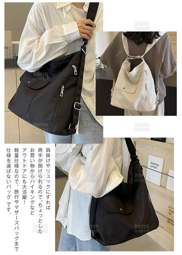 2wayバッグ レディース ショルダーバッグ リュック 3way 2way バッグ 斜めがけ 肩掛けバッグ ナイロン 通学バッグ ポケット多い 多収納 整理 大人 大容量 外ポケット きれいめ トートバッグ 学生 シンプル ブラック