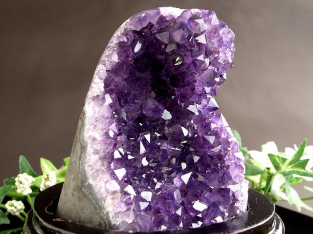 ウルグアイ産 アメジストクラスター スタンドタイプ 5Aグレードのウルグアイ産アメジストクラスターが入荷しました!! こちらは自立できるスタンドタイプのクラスターです。 アメジスト【紫水晶】は真実の愛を教えてくれるといった石言葉を持ち、また2月の誕生石としても有名で非常に人気の高い水晶です。 ブラジル産と比べ、ウルグアイ産アメジストは深みと高級感のある濃い紫色で産出したり、色が薄い物でも透明度が高く宝石質の美しい品が多いのが魅力です。 つや感・透明感・結晶ともにバランス抜群で、これぞアメジストと感じられる極上品です。 久しぶりにトップグレードと呼べる濃い紫結晶ですので、是非! 水晶クラスターなどと比べて流通量が少なく、なかなか入荷致しませんのでお見逃し無く。 【ストーンキーワード】 ・癒しと安らぎ ・精神の安定 ・真実の愛を守り抜く |