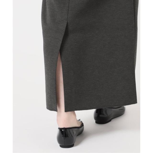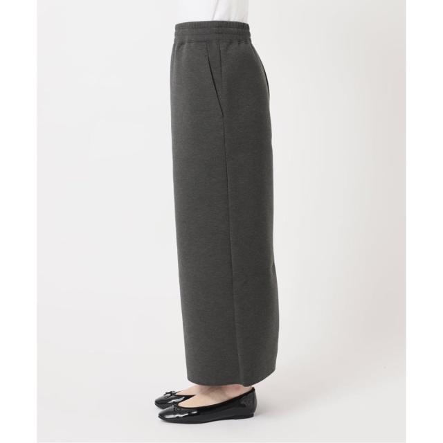 なめらかな表面感でジャージー素材ながらもカジュアルになりすぎず、すっきりとした縦ラインが大人のスタイリングに品よく馴染みます。