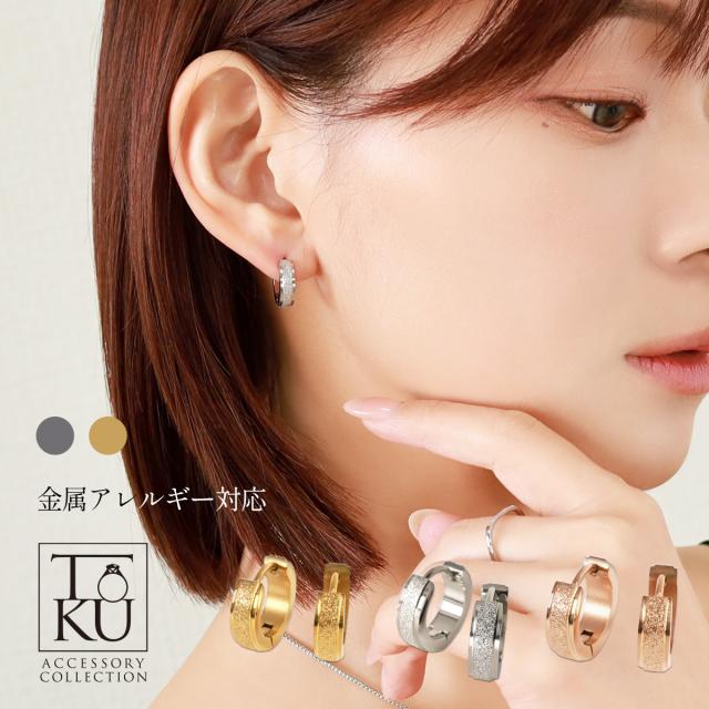 【両耳用/3color】サージカルステンレス グリッターフープピアス 砂目 マット 艶 上品 シンプル 小ぶり レディース 金属アレルギー対応