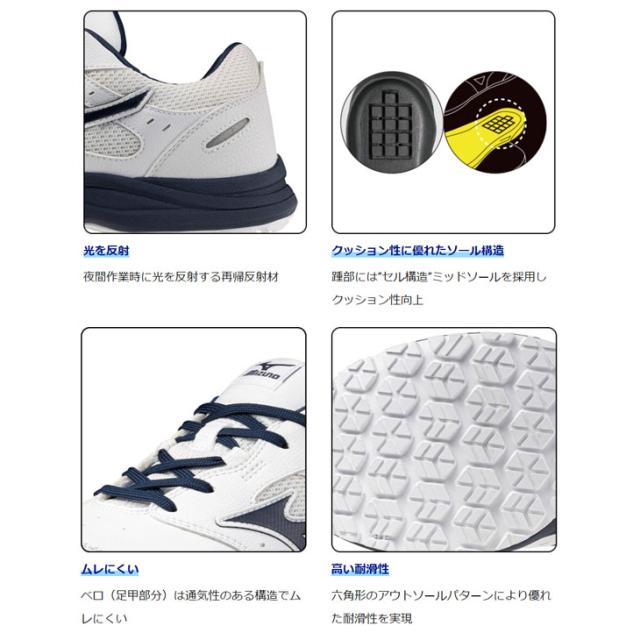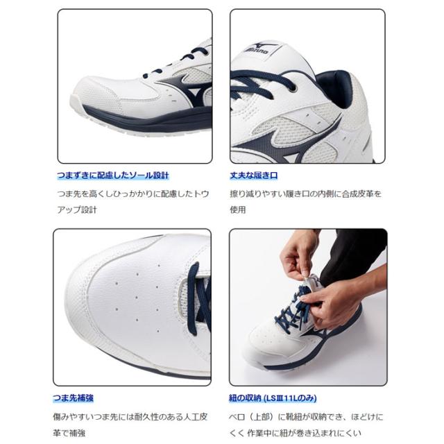 ミズノ 作業靴 安全靴 メンズ 3本ベルト 3E相当 ワーキングシューズ mizuno オールマイティLS3 22L 硬質樹脂先芯 ローカット 軽量 クッション性 プロテクティブスニーカー JSAA規格A種合格 建設 製造 運輸 普通作業 現場作業 ブランド ワークシューズ くつ/F1GA2601