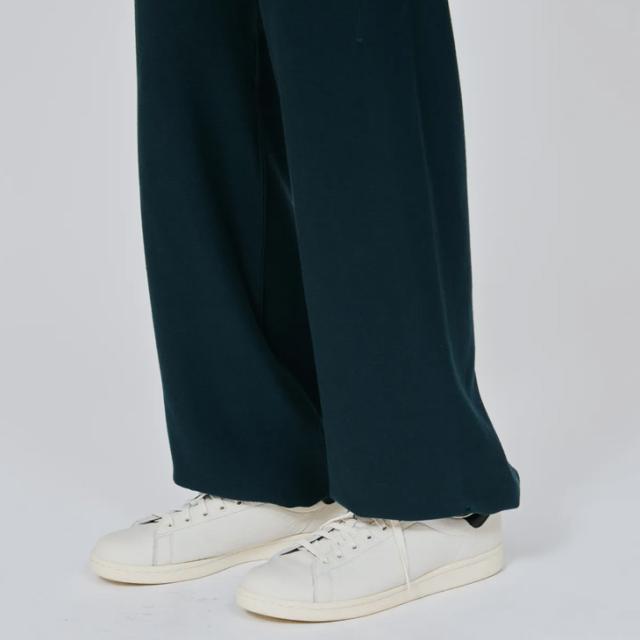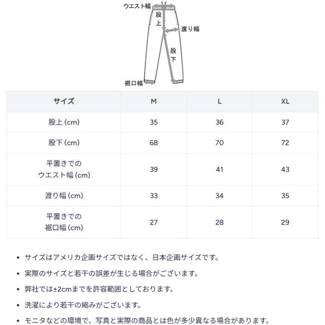 ウエストはゴム仕様で、ヒップからワタリ、裾にかけてゆとりを持たせたワイドシルエット。